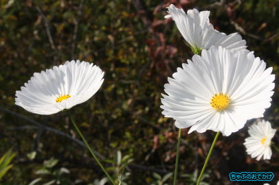 | 真っ白なコスモス とてもかわいい~💛 「見てみて~」と言わんばかりに風に揺れていました 「カップケーキ」花言葉:謙虚 | |